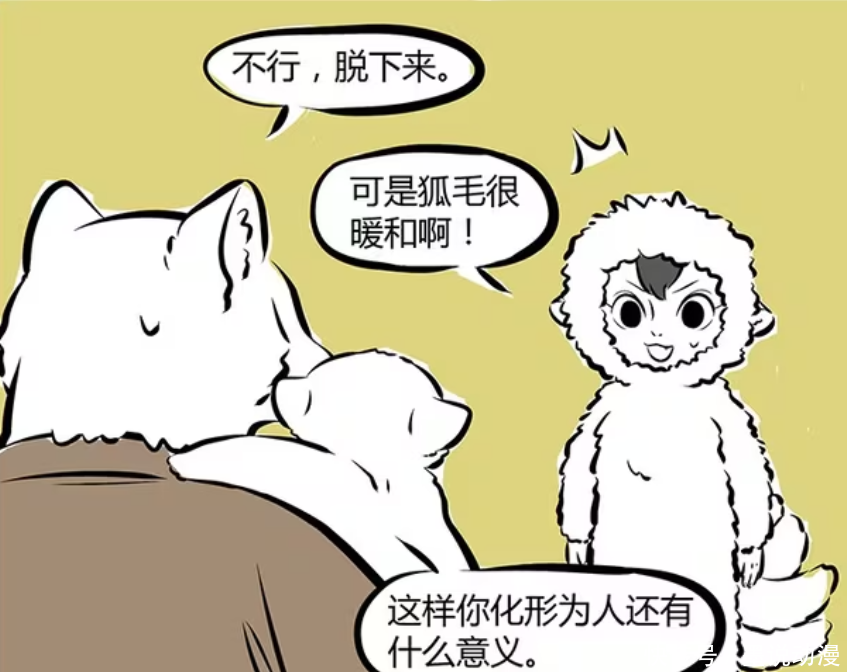 《非东说念主哉》漫画版中,九月因为无法化形为频频东说念主脸,还被十一月讪笑,那就只可哭给老爸年叔看。年叔匡助九月化形开云(中国)Kaiyun·官方网站,不外造成古代好意思女的状貌,亦然有点突兀。至于十一月,化形术是澈底掌捏,不外为了保暖,还薅其他九尾狐的毛。