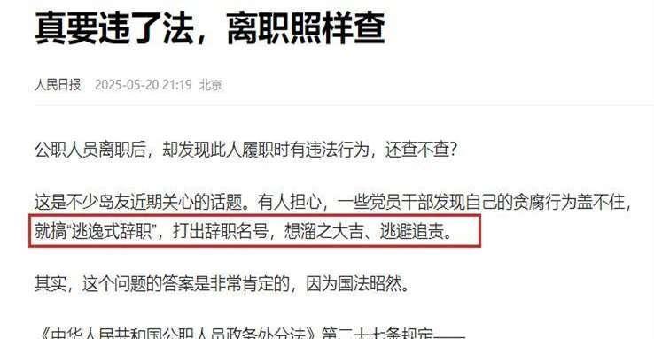 对此,《东说念主民日报》也发了篇著作。著作里一个字没提黄杨钿甜,也没提她爸,但字里行间那种嗅觉,像是说什么“躲避式辞职”、“最近宇宙热议的话题”。其实中枢真理等于:别合计辞了职就啥事皆莫得了,真如若犯科了,辞职了照样得查。