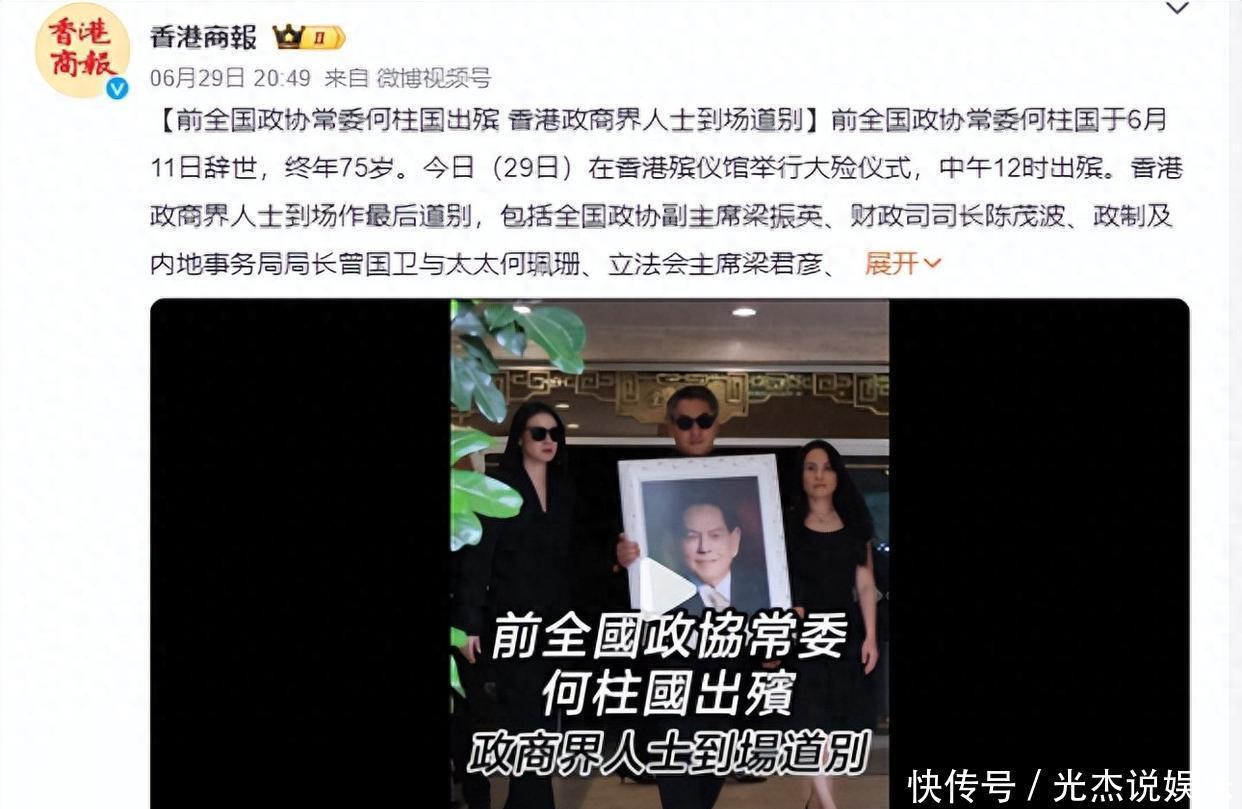 据悉何柱国事在6月11日因病死亡的,享年75岁。在6月29日早上11时进行大殓,为了送别这位巨贾终末一程好多巨贾和名东说念主也前来诅咒。