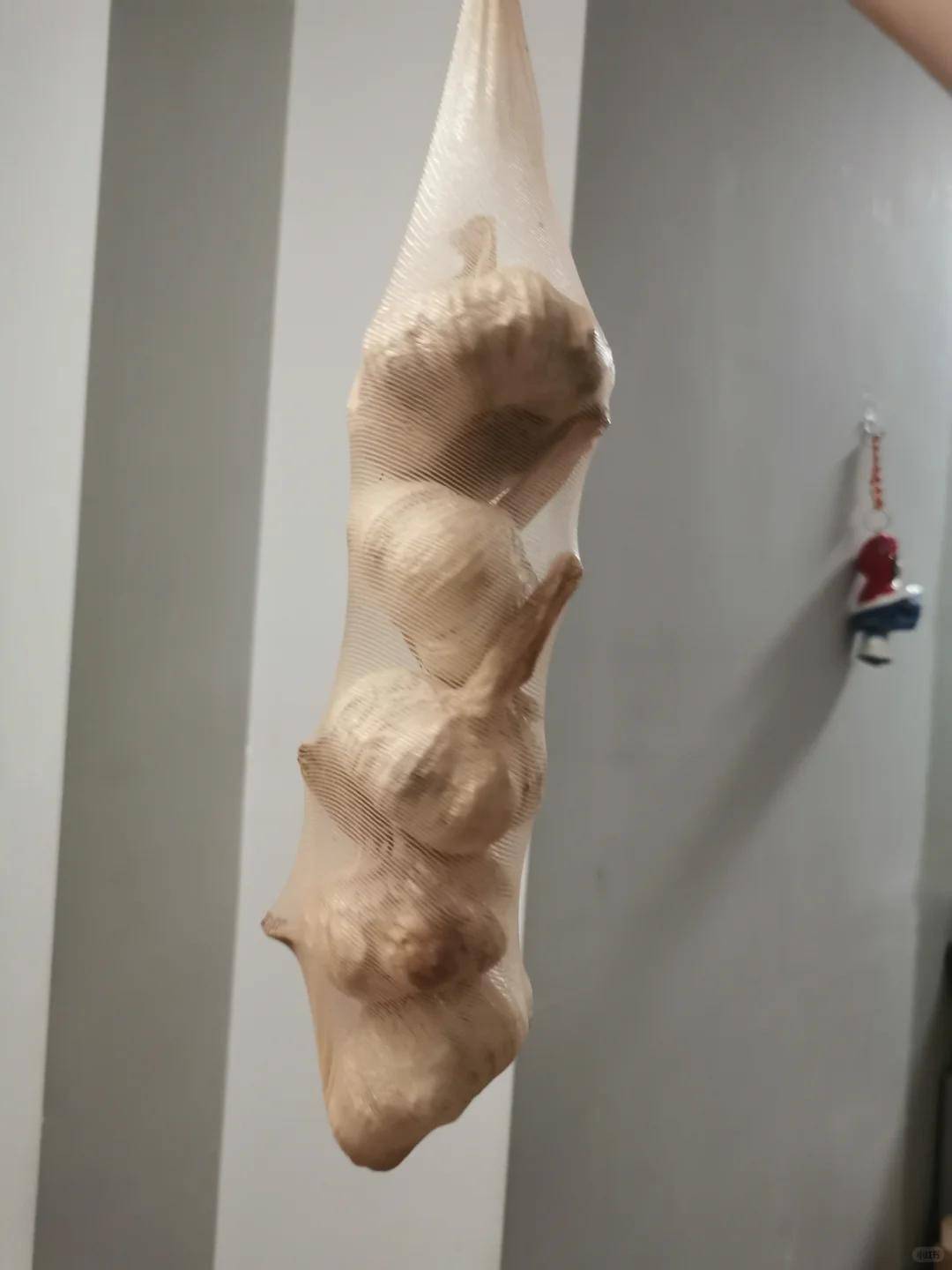 丝袜本人呈网状,透气性佳且包容性强,用来收纳厨房中的大蒜再适当不外。用丝袜包裹大蒜,不仅能检朴空间,还能有用疑望大蒜铩羽。