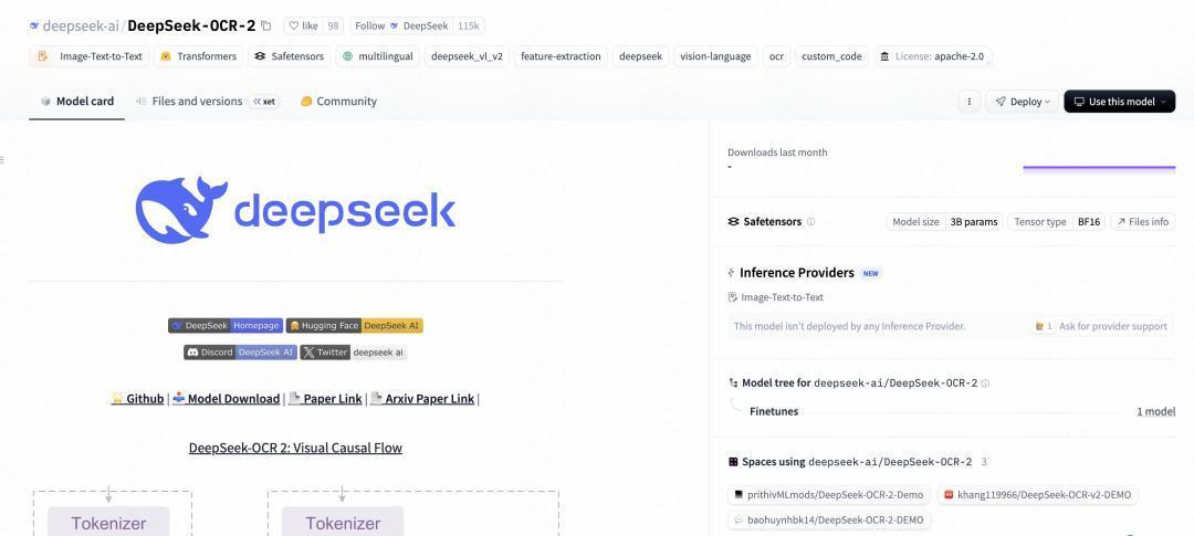 Hugging Face:https://huggingface.co/deepseek-ai/DeepSeek-OCR-2