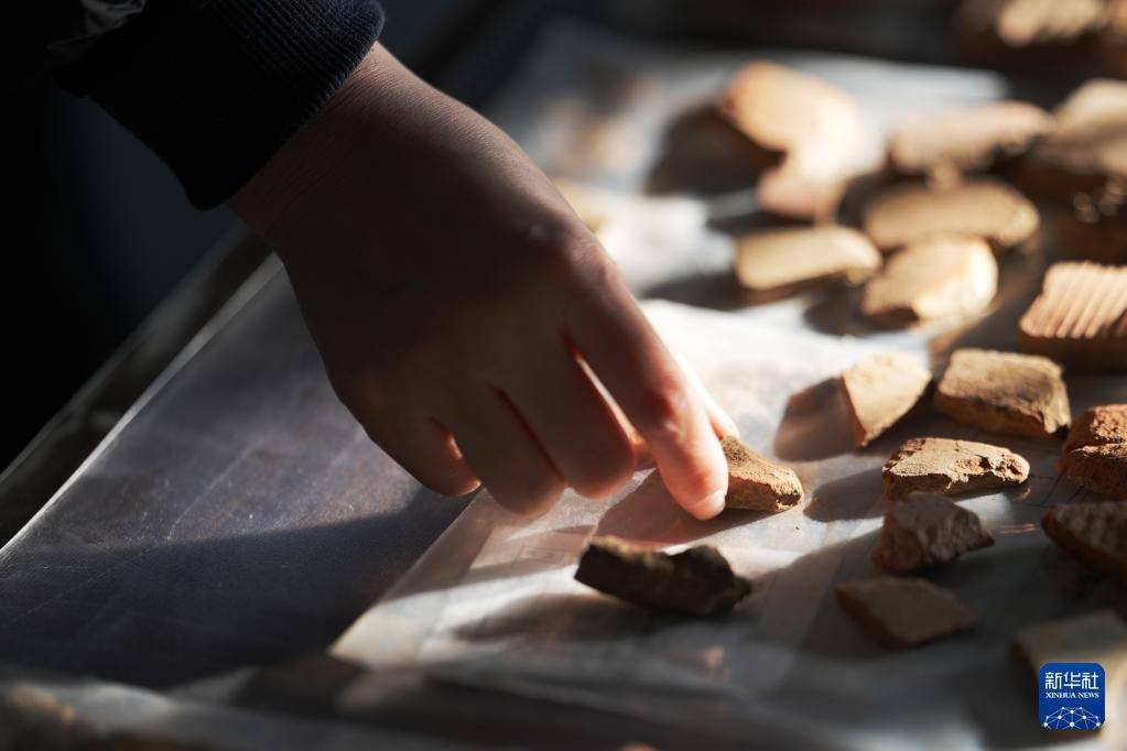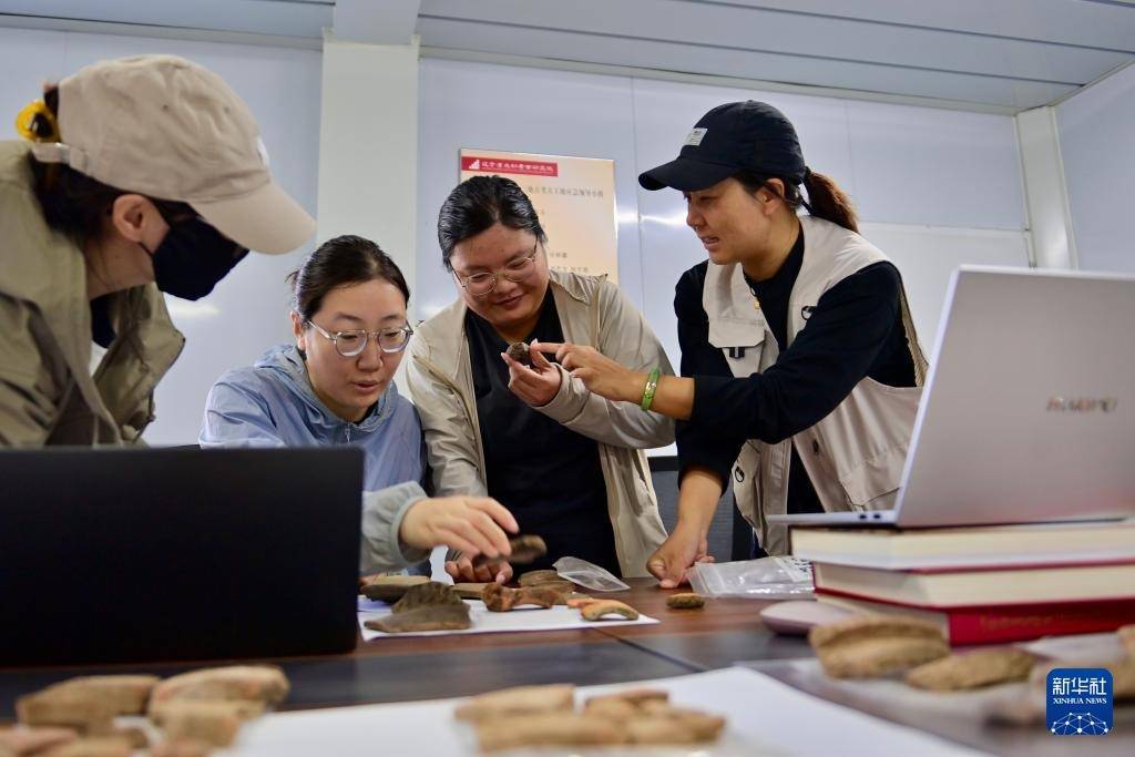 10月23日,使命主说念主员在位于辽宁向阳的牛河梁使命站分拣陶片。