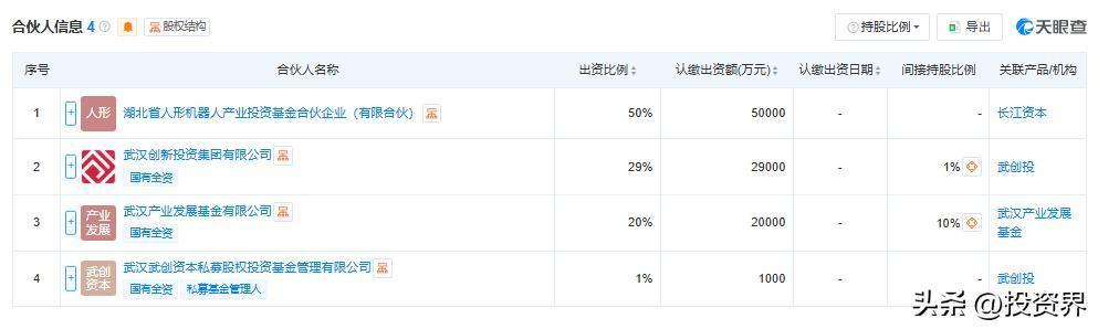 合鼓舞说念主信息深切,该基金由湖北省东说念主形机器东说念主产业投资基金合股企业(有限合股)、武汉翻新投资集团有限公司、武汉产业发展基金有限公司、武汉武创成本私募股权投资基金搞定有限公司共同出资。