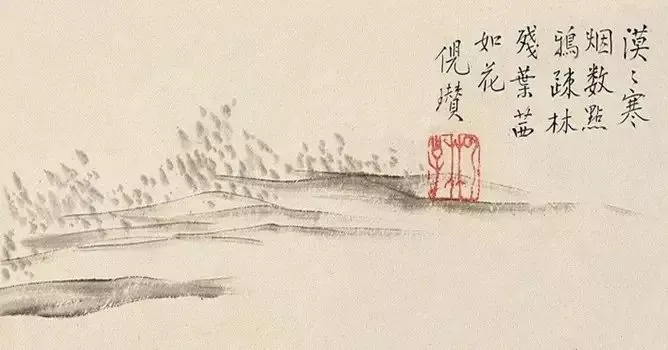 倪瓒的画寒烟沉寂,很少有东谈主,他愿意过火地画上一堆点。