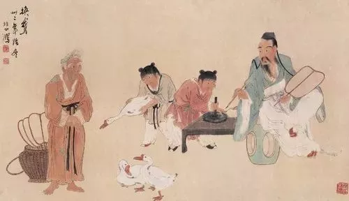 东晋王羲之爱鹅成癖,传闻老媪有好意思鹅,登门打听却见鹅被杀,哭笑不得;谈姑以鹅换《黄庭经》,他怡然欢喜,“换鹅帖”由此得名。
