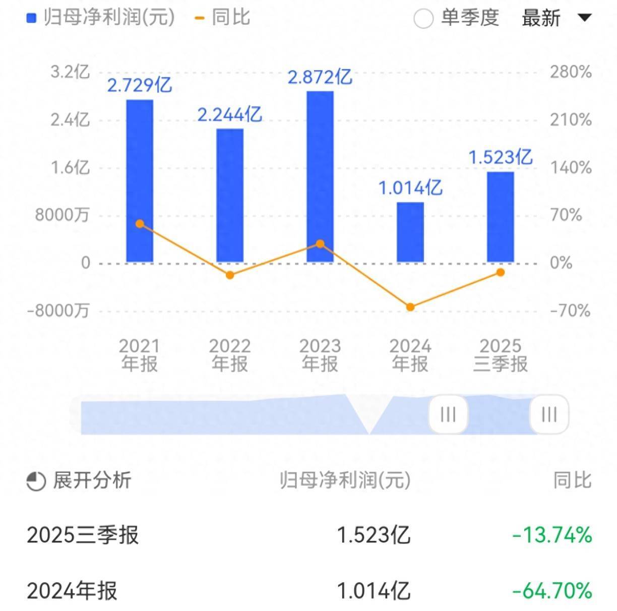事迹方面,2024年公司营收净利双双出现下滑,净利润降幅更是同比特地六成。2025年前三季度,公司事迹陆续承压,完结营收42.66亿元,同比减少6.55%;净利润1.523亿元,同比下滑13.74%。